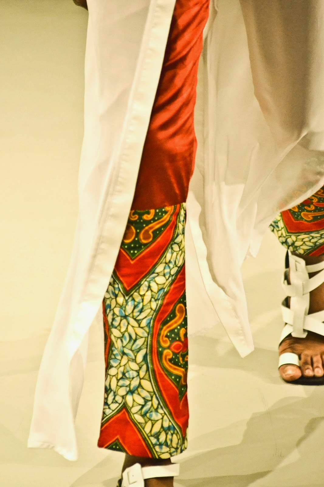 The showcase featured bare-chestedness, warrior wraps, bold colours in the redness of our soil and clay, evergreeness, leather accents of our livestock and good solid, "fertile" lines in the women's wear.